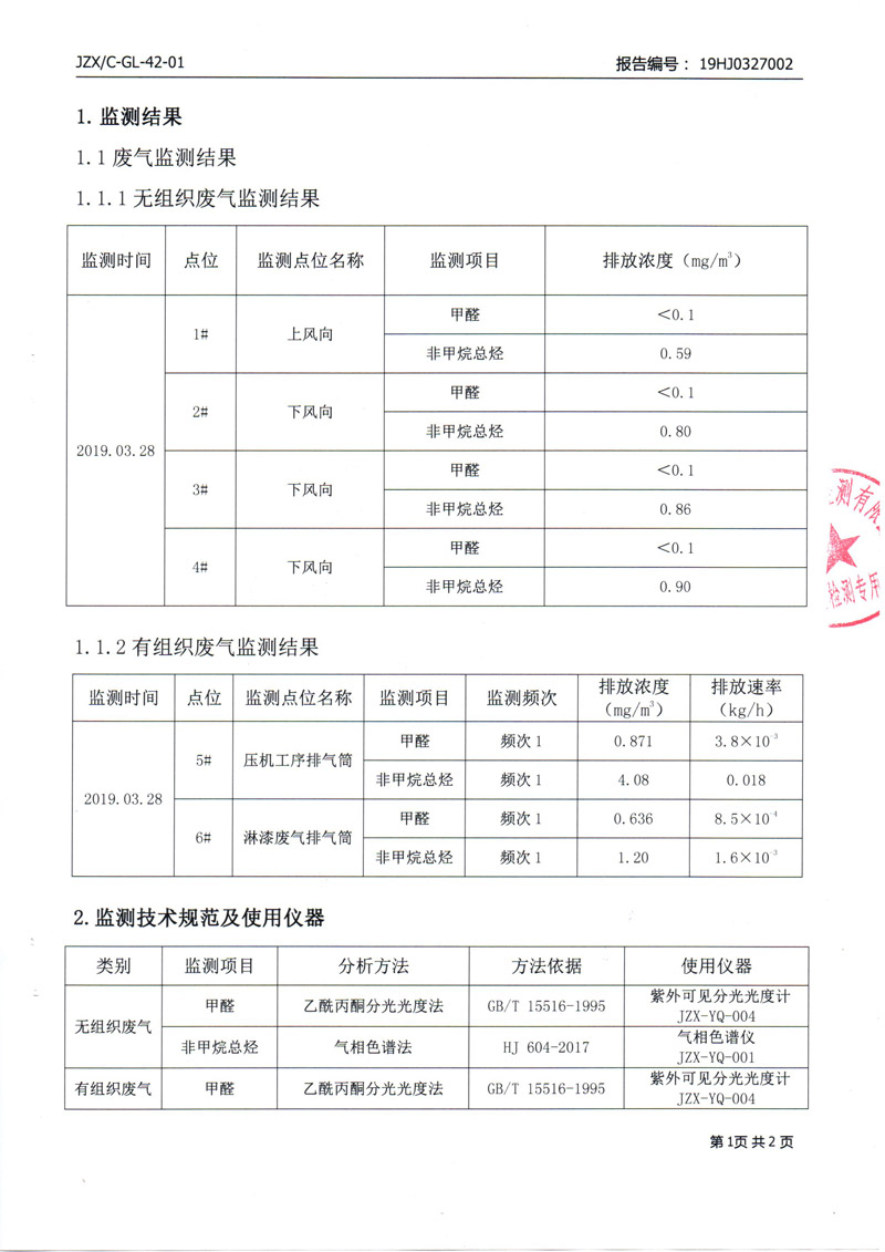 2019年4月環(huán)保檢測報告